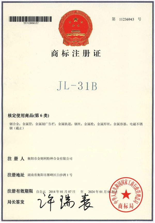 衡陽市金則利特種合金股份有限公司成立于一九九九年十二月,注冊資本人民幣兩千兩百萬元。注冊地址:衡陽市雁峰區(qū)白沙洲工業(yè)園長塘路2號。公司主營耐蝕軟磁合金,為湖南省高新技術(shù)企業(yè)。公司自成立以來,即致力于耐蝕軟磁合金的研發(fā)。 研制出的JL-31(00Cr13si2Pb)、JL-31B(00Cr13si2)、JL-31BS(00Cr13Si2S)、JL-37B(0Cr17Si2)、JL-37(0Cr17···